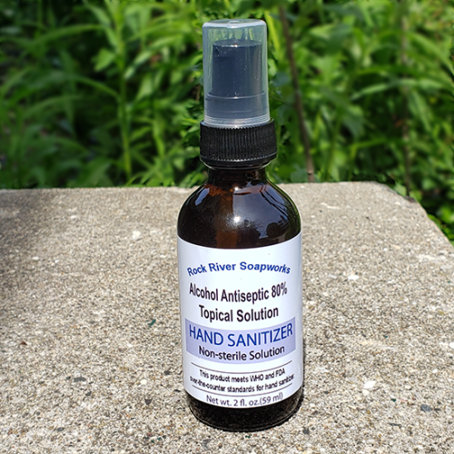 Hand sanitizer to help reduce bacteria that potentially can cause disease. For use when soap and water are not available. Lightly scented with essential oil. Amber glass bottle with a convenient pump dispenser.